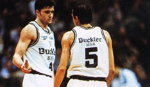 Il 4 dicembre 1994, Virtus Buckler Bologna - Panapesca Montecatini, prima giornata di ritorno rimane scolpita nella storia perchè cominciò con una presentazione delle squadre anomala: la voce di Gigi Terrieri scandì: "Col numero 4 Sasha Danilovic, col numero 5 Roberto Brunamonti...." no, non si tratta di un errore, in quell'occasione i due campioni si scambiarono la maglia, in segno di reciproca ammirazione. La cronaca è di una partita come tante, ma l'episodio ha un suo significato che va oltre lo specifico cambio numerico. Parte bene la Buckler, canestro di Binelli (che segnerà 8 punti nei primi 10 minuti) e poi di Moretti su lancio di Danilovic. Poi però i toscani risalgono, 10-12 poi 14-21 sul loro massimo vantaggio. All'intervallo ospiti ancora sopra, 51-54 con un Sasha nervoso: si fa fischiare un tecnico ed è insolitamente impreciso, abituato a tirare con medie altissime, staserà finirà con 7 su 18 dal campo, ammortizzato da un ottimo 10 su 11 dalla lunetta. Nella ripresa una tripla di Moretti opera il riaggancio, 60-60, ma la Panapesca si riporta sopra 66-69, allora Bucci cambia le torri, fuori Bin-Bin (Binelli e Binion) e dentro Carera e Morandotti. Mossa vincente perchè Bologna vola sul 77-69 con un parziale di 11-0, grazie a Moretti e Carera che si infilano nelle maglie larghe della difesa avversaria, per poi controllare fino al 107-100 finale. Alla fine 10 punti per Brunamonti e 21 per Danilovic, ma soprattutto un'altra pagina della stima reciproca e dell'amicizia tra i due campioni.