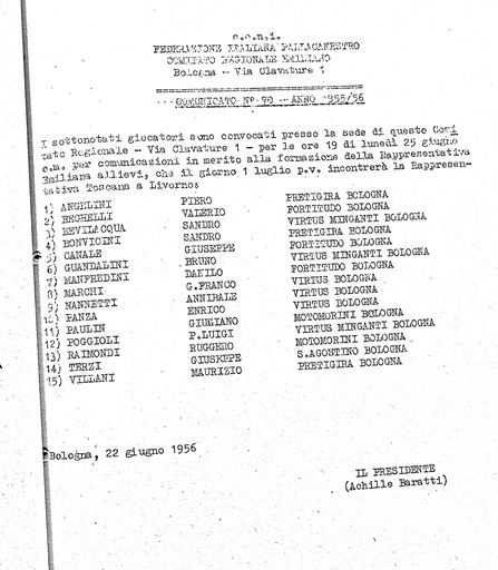 La classifica: 1. Virtus Minganti di Bologna p. 4; 2. Olimpia Libertas di Ferrara p. 2; 3. Gira Preti di Bologna p. 0.